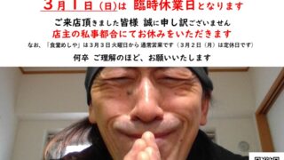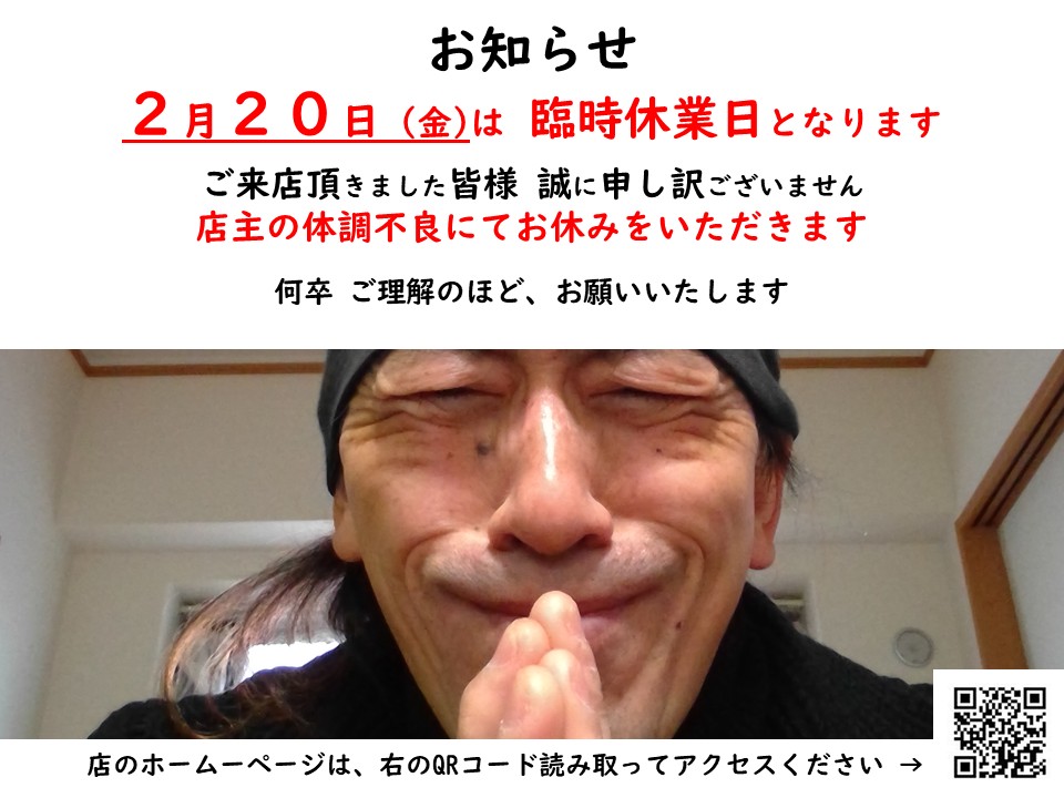 Topic / 話題緊急、2月20日「臨時休業」のご案内
